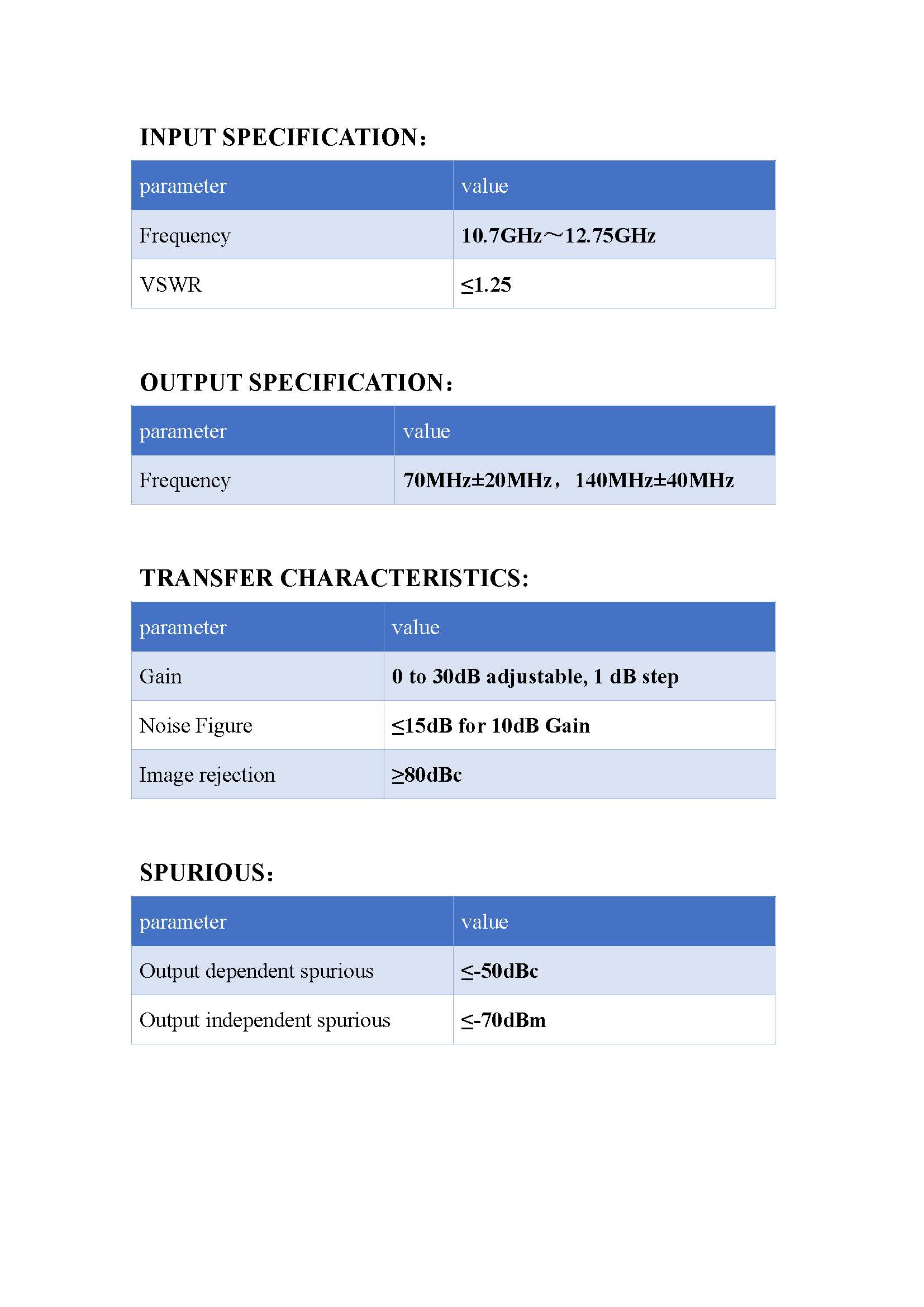 KU-Band down-converters mainly change the signal from 10.7GHz~12.75GHz to 70MHz or 140MHz by 2stage conversion,the number of channels is selectable, close requirements can be discussed.