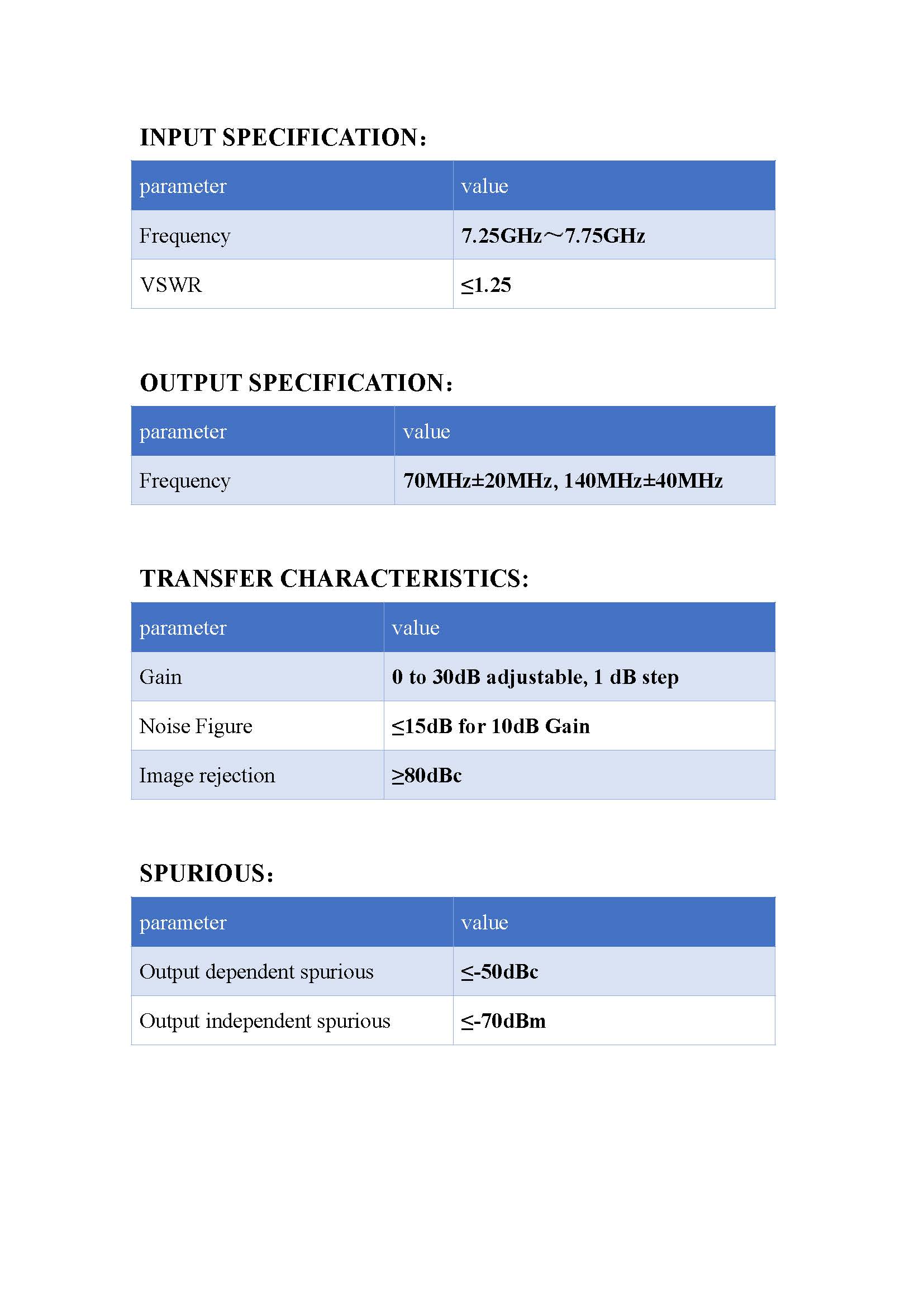 X-Band down-converters mainly change the signal from 7.25GHz~7.75GHz to 70MHz or 140MHz by 2stage conversion,the number of channels is selectable, close requirements can be discussed.